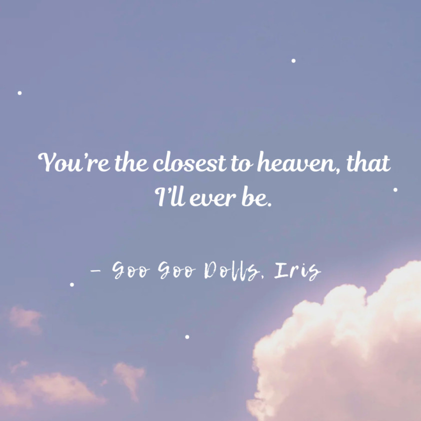 - You’re the closest to heaven, that I’ll ever be. – Goo Goo Dolls, Iris
