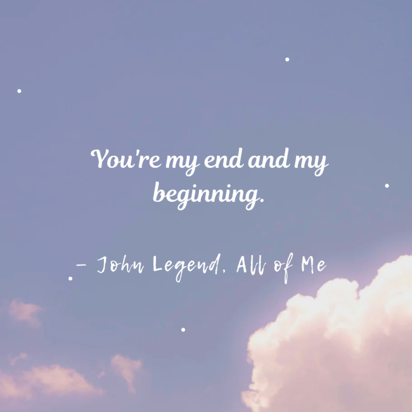 - You’re my end and my beginning. – John Legend, All of Me