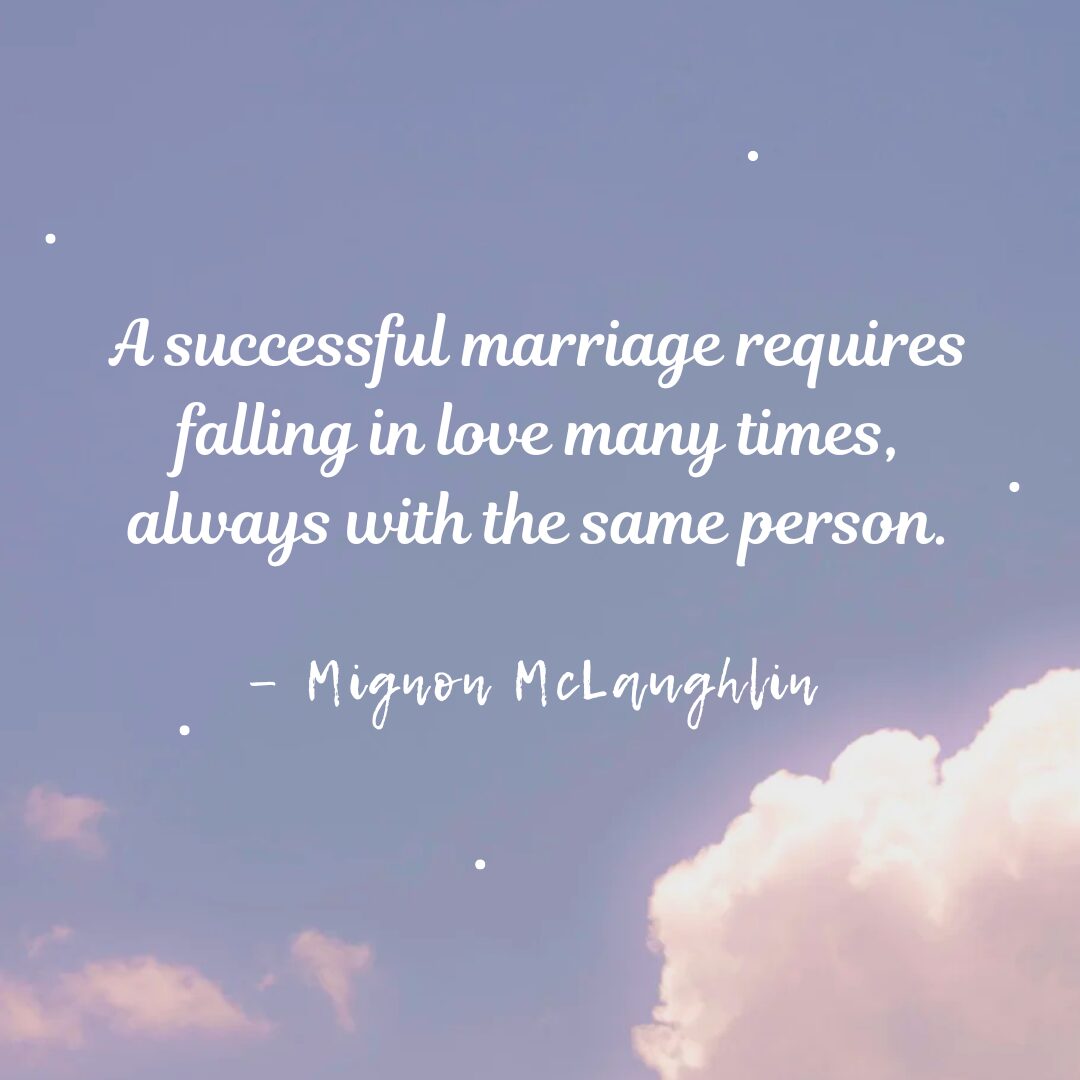 - A successful marriage requires falling in love many times, always with the same person. – Mignon McLaughlin