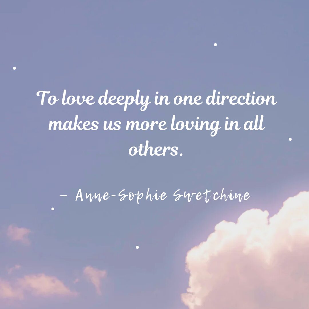 - To love deeply in one direction makes us more loving in all others. – Anne-Sophie Swetchine